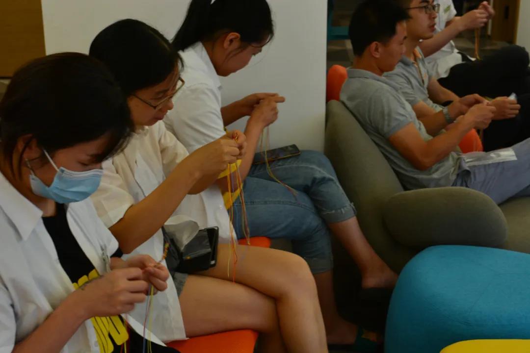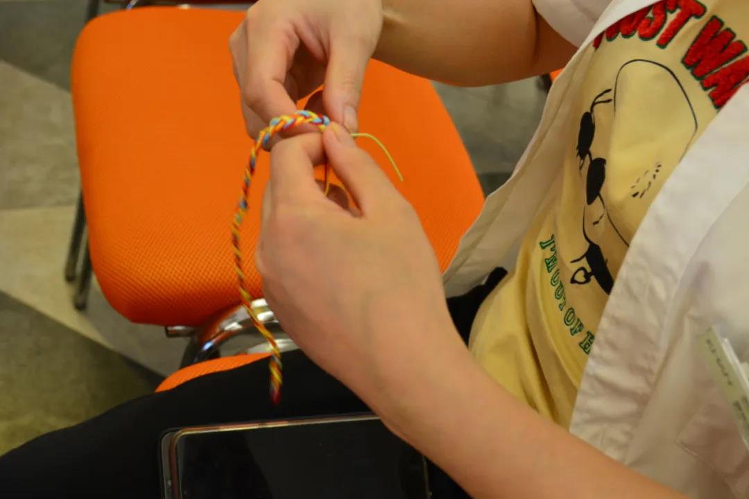 活動(dòng)的最后,是編制五彩手繩,戴五彩手繩也是端午習俗的其中一種,有祈福的蘊意,祈福未來(lái)平平安安,好運相伴。